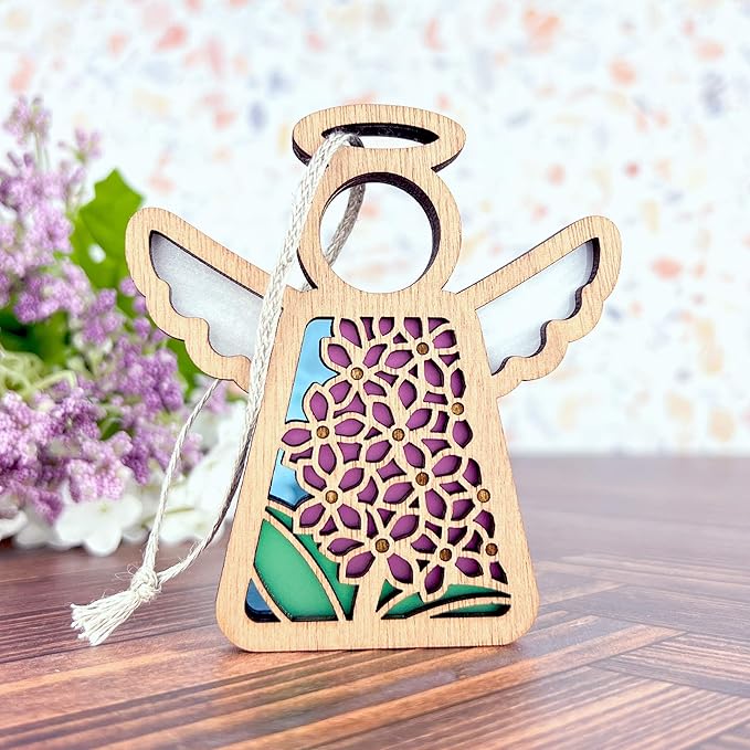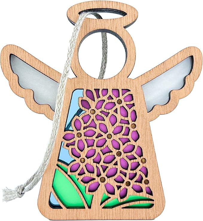 3.5" (H) Purple Lilac Flower Christmas Ornament - Bridal Bouquet Memorial Charm - Angel Window Suncatcher