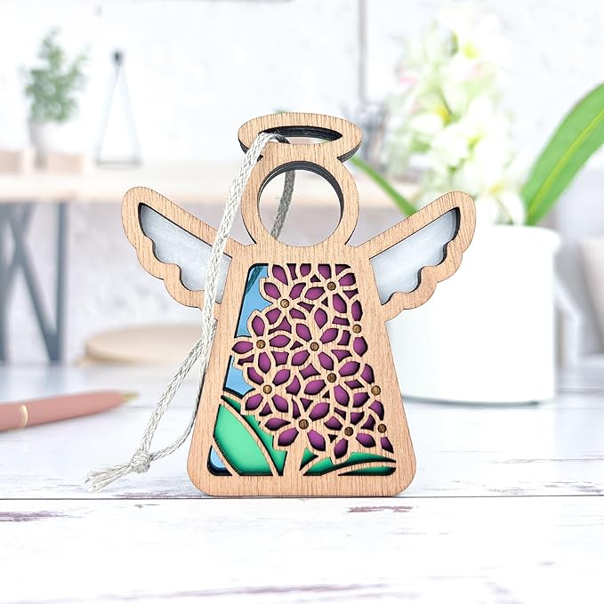 - CAPTIVATING SUNLIT BEAUTY - Each angel showcases a unique motif at its center—reminiscent of the beauty found in stained glass—evoking wonder and delight. The three-layered design ensures a mesmerizing display from both front and back, especially when placed near a window where sunlight brings their colors to life.