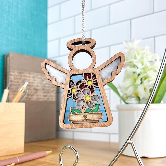 - CAPTIVATING SUNLIT BEAUTY - Each angel showcases a unique motif at its center—reminiscent of the beauty found in stained glass—evoking wonder and delight. The three-layered design ensures a mesmerizing display from both front and back, especially when placed near a window where sunlight brings their colors to life.