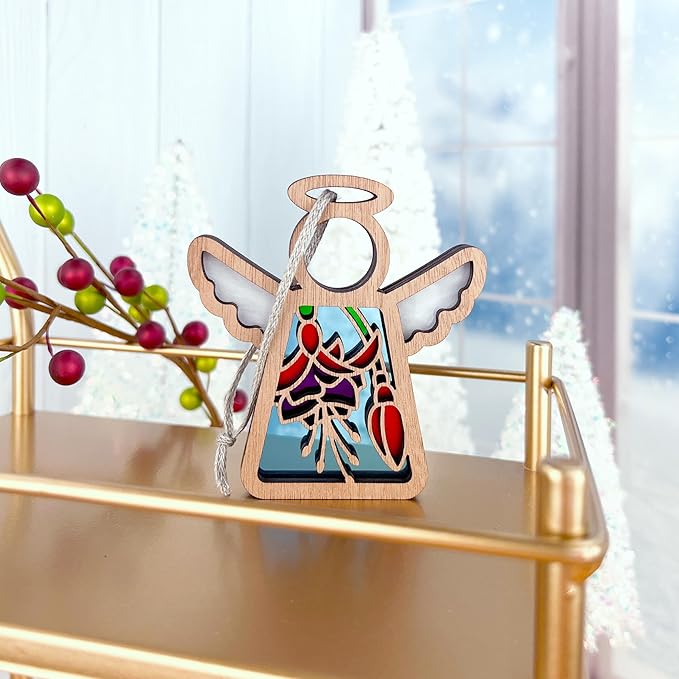 - CAPTIVATING SUNLIT BEAUTY - Each angel showcases a unique motif at its center—reminiscent of the beauty found in stained glass—evoking wonder and delight. The three-layered design ensures a mesmerizing display from both front and back, especially when placed near a window where sunlight brings their colors to life.