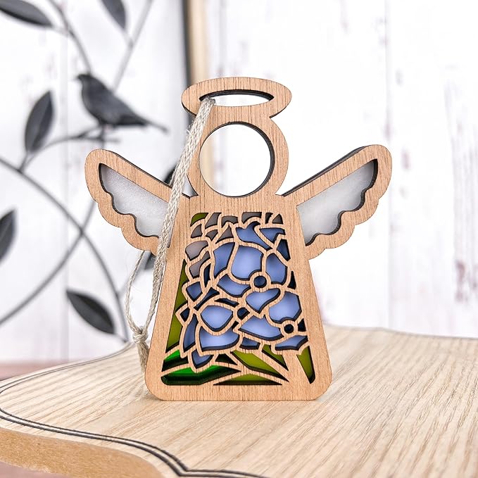 Blue Hydrangea Home Decor - 3.5" (H) Small Wooden Angel Figurines - 3.5" Christmas Ornaments Memorial Mom