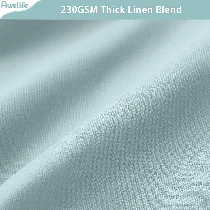 Awellife Farmhouse Blue Shower Curtain Button Linen Textured Woven Fabric,Country Style,72x72 Inch