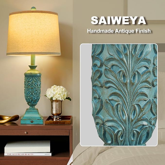 - 【Rustic Bedside Lamps】Experience the charm of yesteryear with our table lamps set of 2. Handcrafted with an antique floral resin body and a linen shade, it casts a soft glow, perfect for adding a warm, nostalgic touch to your home. Its natural, vintage style fits seamlessly into living rooms, bedrooms, dining rooms, restaurants