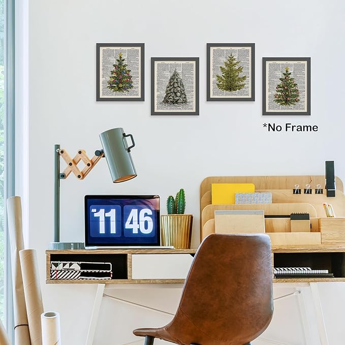 TLESKE Vintage Winter Christmas Pine Trees Posters Prints Unframed Set of 4 for Home Bedroom Living Room, Retro Christmas Pine Trees Wall Art Prints Decor, Aesthetic Winter Wall Pictures, 8x10