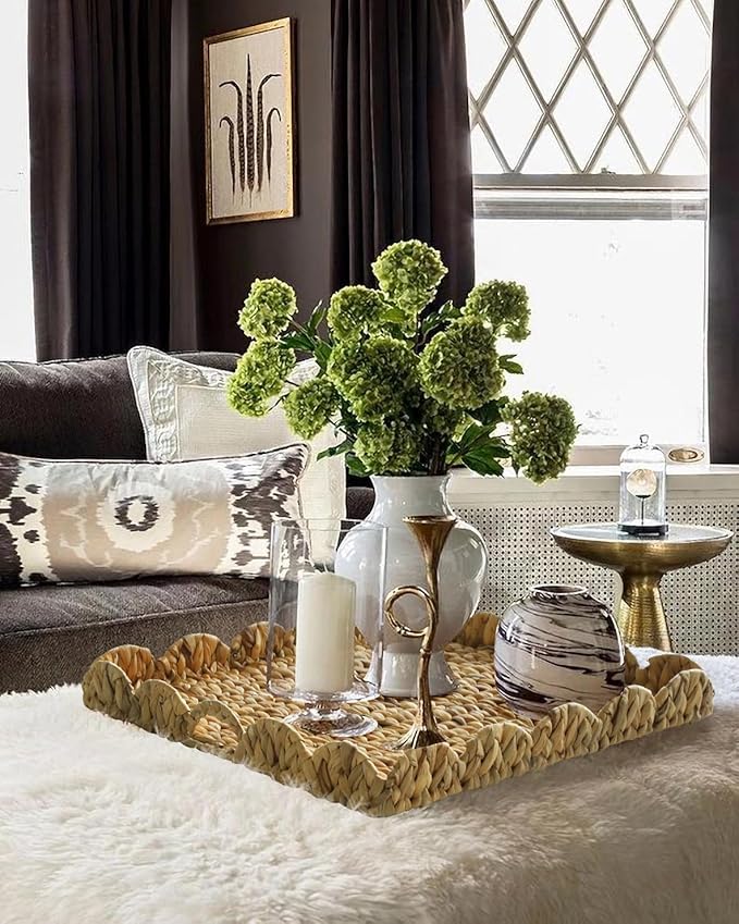 - π· HIGH QUALITY - Our extra large woven water hyacinth serving tray is crafted from water hyacinth over a sturdy iron frame. Not only functional but also serves as a decorative piece that adds a touch of natural elegance and a connection to nature. With handles for easy carrying and serving