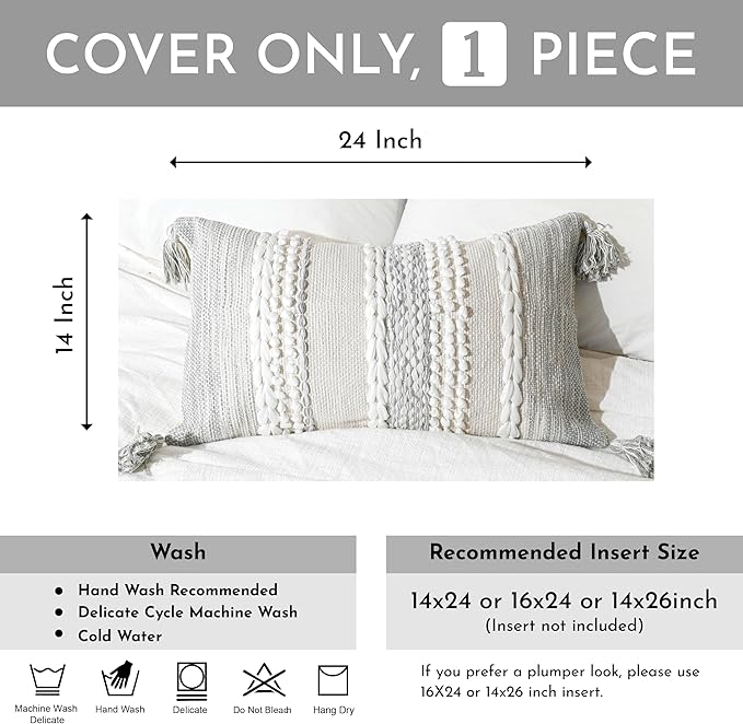 - Cover Only: Boho Decorative Lumbar Throw Pillow Cover 14x24