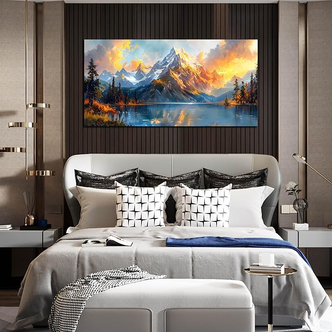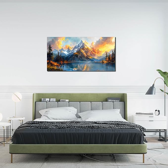 Large Canvas Wall Art for Living Room Natural Dusk Landscape Mountain Lake Picture Framed Canvas Prints Modern Wall Art for Bedroom Office Size 24x48