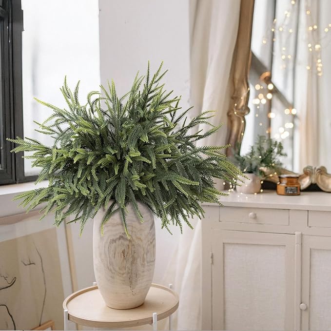 - Real Touch Norfolk Pine Stems: Each pine needle gradually changes from light green to dark green, highly imitating real pine needles. Soft pine branches naturally hang down, simple and elegant, and can be used as delicate Christmas tree fillers, setting a good stage for Christmas celebrations