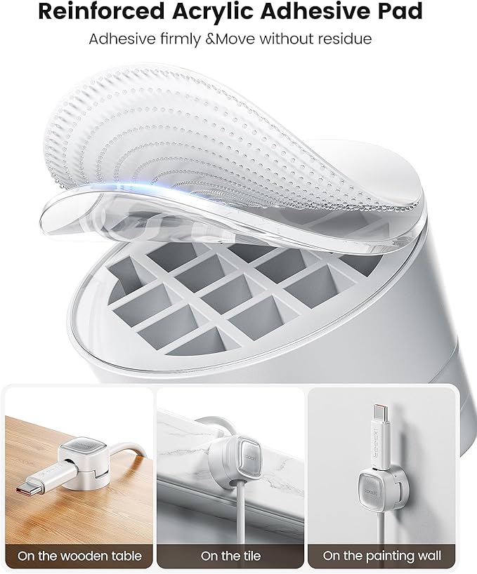 - Reusable and Adjustable: The toocki cable clips offer the convenience of being restickable and reusable. The adhesive can be washed and reapplied up to 10 times, allowing you to reposition your cord holder as needed without leaving residue.