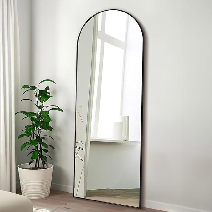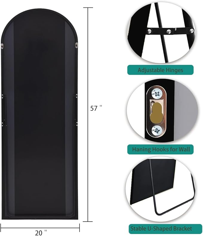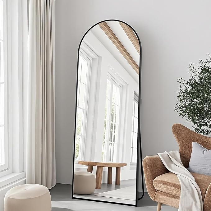 - 【Arched-Top Design】Arched floor mirror is designed with an arched top frame. The mirror is surrounded by an aluminum alloy frame.The frame is very thin,brushed, and more textured. It is very conspicuous in any space and makes your room look tasteful