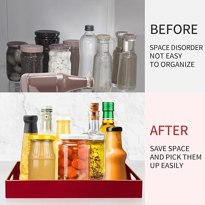 - Versatile Bathroom Tray: Elevate your bathroom's aesthetics with this decorative tray. Its vibrant red color adds a touch of elegance, making it an ideal perfume tray or coffee table tray for your vanity. Dimensions: 15.7''x11.8''.