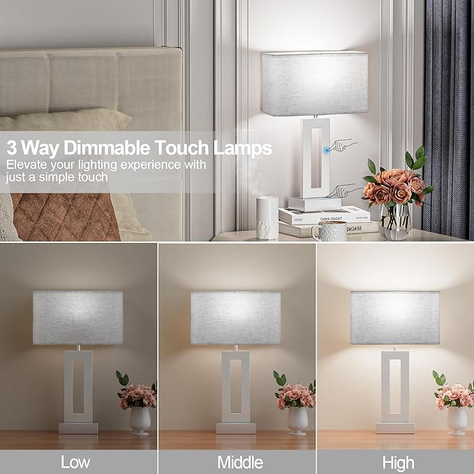 - 【3 Way Dimmable & Touch Control】With the ability to dim in 3 different levels, these lamp for bedroom bring ultimate convenience to your space. A mere touch on the bedroom lamps body or base effortlessly allows you to customize the brightness, allowing you to effortlessly set the mood for any occasion. Whether you desire a serene ambiance at 25%, immerse yourself in a captivating read at 60%, or illuminate your space with full brilliance, these lamps are here to cater to your every need.