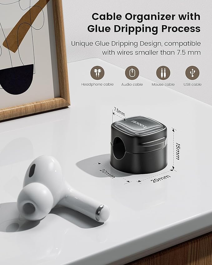 - Versatile Cable Holder: Designed with a 7.5mm slot diameter, this cable organizer is perfect for various cables, including Type-C cables, HDMI cables, USB cables, lightning cables, mouse cords, keyboard and headphone cords. Use it as a reliable cord holder to keep your essential cords neatly organized and easily accessible.