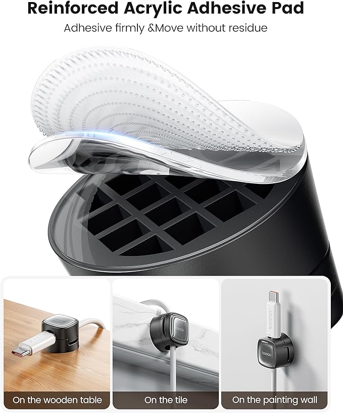 - Reusable and Adjustable: The toocki cable clips offer the convenience of being restickable and reusable. The adhesive can be washed and reapplied up to 10 times, allowing you to reposition your cord holder as needed without leaving residue.