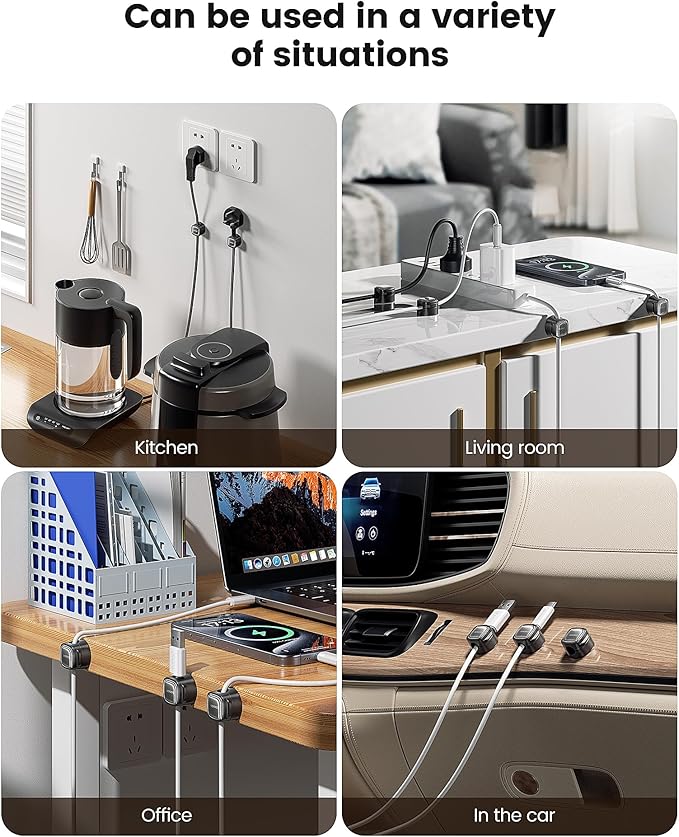 - Organize Your Space: Enhance your workspace or car with the toocki Magnetic Cable Clips, the ultimate cord organizer. This innovative cable management solution keeps your desk, nightstand, or vehicle free from clutter, offering a sleek and efficient way to handle all your cables.