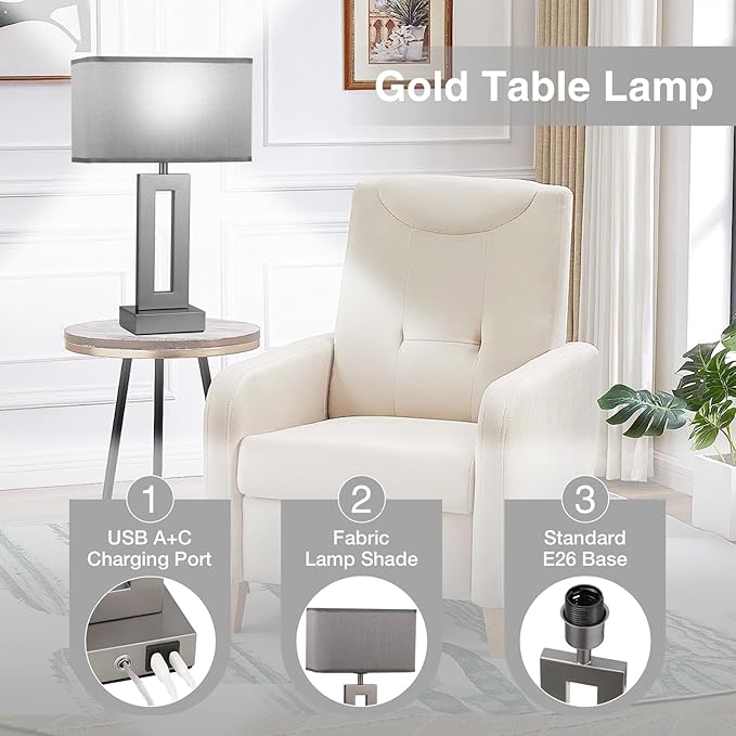 - 【Upgraded USB C+A】No more searching for outlets or sacrificing desk space. Our gold lamp's USB port is discreetly tucked away on the back, ensuring a sleek appearance while providing charging capabilities. This touch lamp boasts USB-C+A port on nightstand lamp base. This allows you to effortlessly charge two devices simultaneously, be it your phone or any other devices. What's even more convenient is that the USB ports remain operational regardless of the nightstand lamp is turned on or off.
