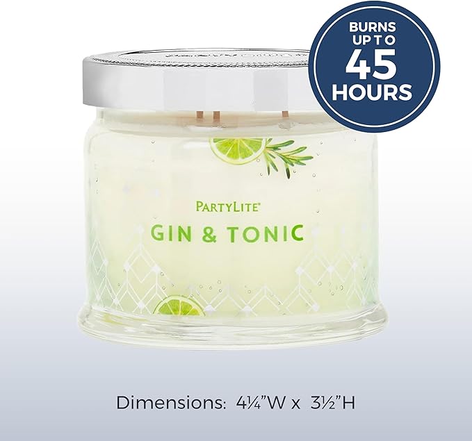 PartyLite 3-Wick Jar Candle, Highly Fragranced Clean Burning Glass Candle, 25-45 Hours Burn Time (Gin & Tonic)