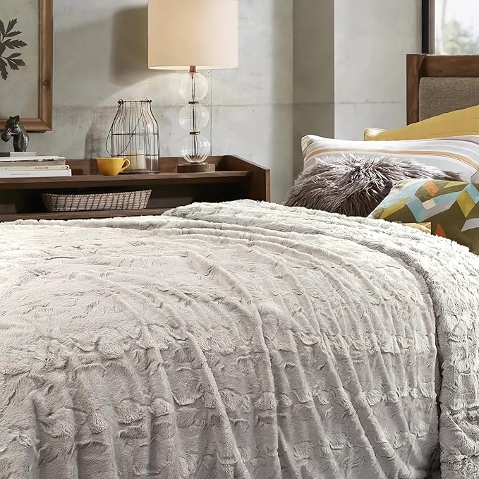 TOONOW Faux Fur Luxury Throw Blanket,Double Side Soft Fluffy Shaggy Fuzzy Blanket for Couch Sofa Bed (Pumice Stone, Queen Size)