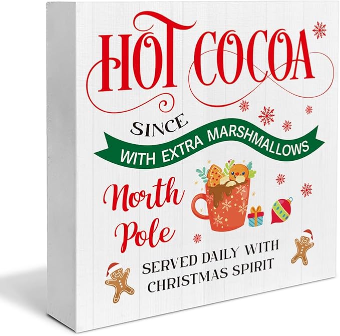 Christmas Decorations Indoor Home Decor, Hot Cocoa Wooden Sign, Gingerbread Wooden Block Sign, Christmas Decor for Table Shelf 5 x 5 Inch