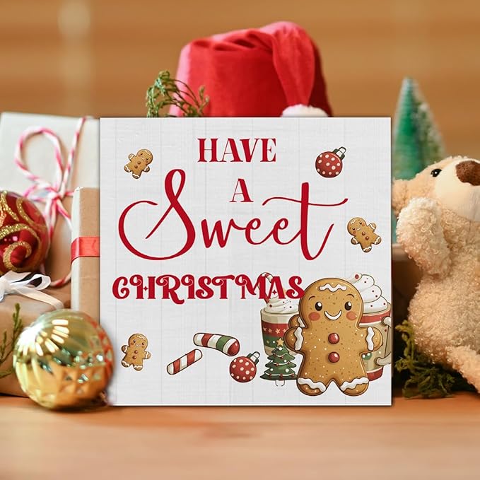 Christmas Kitchen Decorations, Hot Cocoa Wooden Sign Gingerbread Decor, Farmhouse Christmas Wooden Block Sign, Christmas Home Decor for Table Shelf 5 x 5 Inch