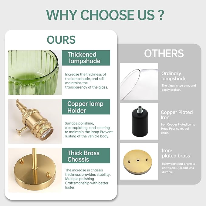 - ⭐【High Quality Materials】The glass is carefully selected and treated to ensure that it is brightly coloured and uniform, without blemishes. The glass has a clear texture and can penetrate light very well. The metal parts are made of corrosion-resistant and oxidation-resistant materials, presenting an elegant sheen and texture.