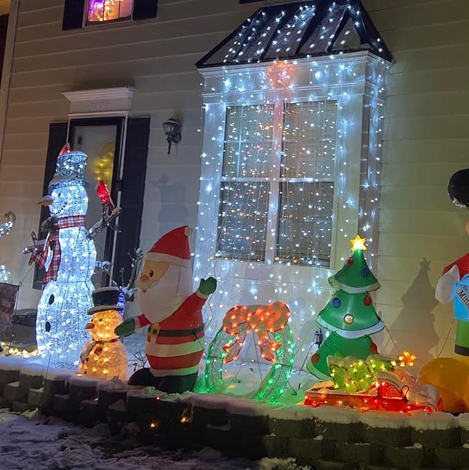 - 8 Lighting Modes: Christmas lights has 8 lighting modes (combination, in wave, sequential, slo-glo, chase/flash, slow fade, twinkle/flash, steady on). Different lighting effects are controlled by the adapter button. Change the mode as needed to attract and surprise your neighbors! Christmas lights will be a eye-catching decoration at your party.