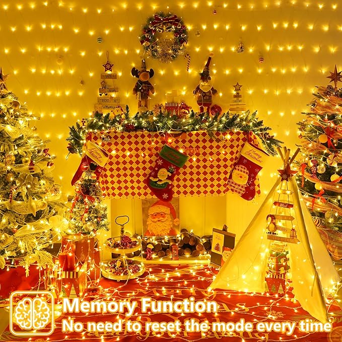 - Memory Function: Christmas lights built- in memory chip save your last modes setting and no need to reset mode every day. It means you don't have to get on a ladder and press the button to put it on the setting you want every day.