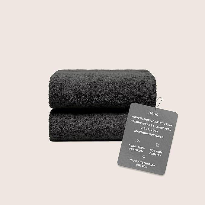 Italic Ultraplush 100% Australian Cotton Bath Sheets - Set of 2 Luxury Extra Large Heavy Duty Bath Sheets, 800GSM Plush and Absorbent, Bath Sheets for Hotels, Bath, Gym & Spa (Charcoal)