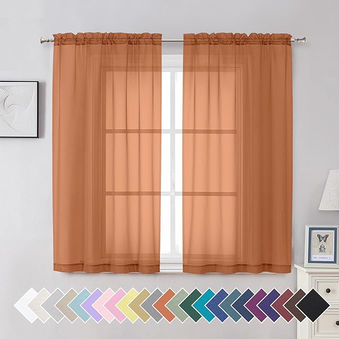 Aiyufeng Orange Sheer Curtains 54 Inch Length 2 Panels Set, Light Filtering Airy Rod Pocket Orange Window Curtain Treatment Drapes for Kitchen Bedroom Living, Each 42Wx54L Inches