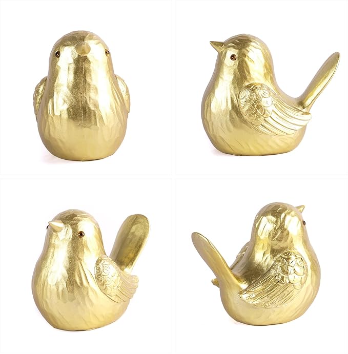 Gold Bird Decor - Small Bird Statues Modern Style Figurines for Living Room, Desk & Entryway, Cute Country Decor (Gold, 1B & 1S)