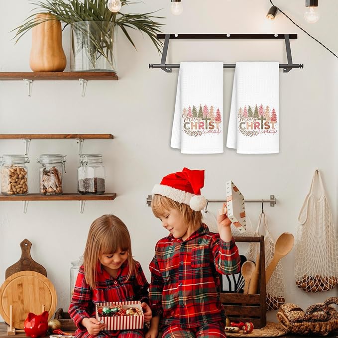 Christian Christmas Kitchen Towels, Retro Christmas Tree Cross Decorative Hand Towels for Bathroom, Christmas Dish Towels for Kitchen, Christian Christmas Kitchen Bathroom Decor, 16x24 Inches