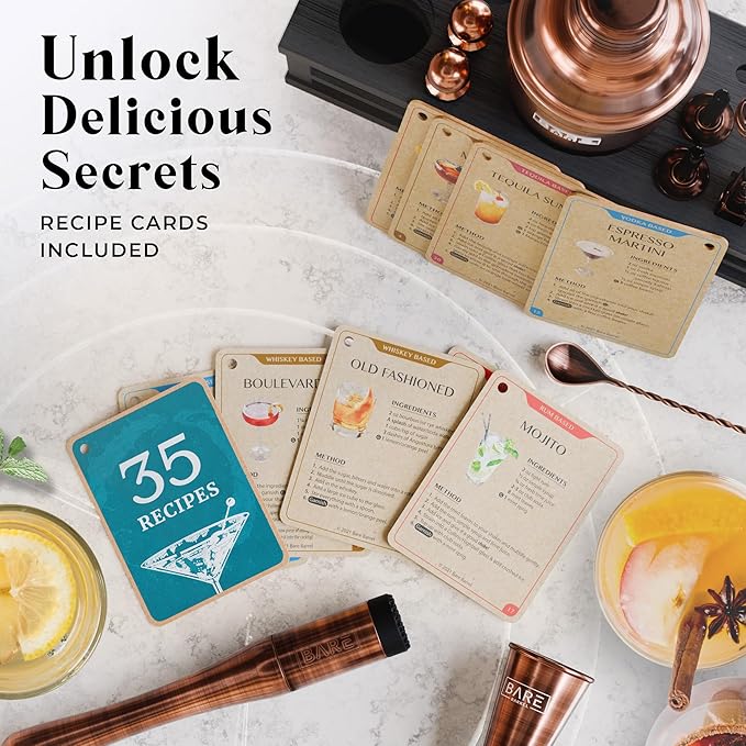 - ✔ ENDLESS TASTY RECIPES » Includes 35 recipe cards, so whether you fancy the taste of whiskey, vodka, rum, gin or tequila, you're covered! Enjoy an Old Fashioned, Margarita, Martini, Mojito...