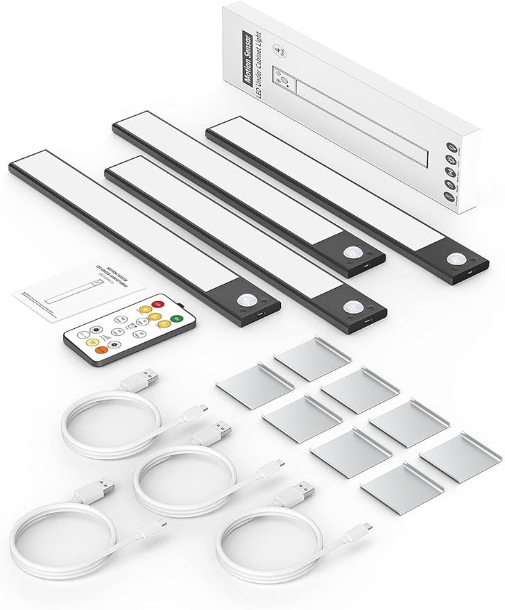 - 【3 Color Temperature & 4 Timers & 6 Levels Dimmable Under Cabinet Lights with Upgraded Remote】— These under cabinet led lighting have 3 colors(warm white/natural white/cold white). With 4 time settings of 15Min/30Min/45Min/60Min, you can also adjust the brightness from 10% to 100% by pressing the button on the remote control, which can be operated within 16ft.