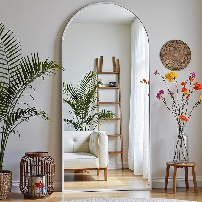 Arched White Full Length Mirror, 71"X30" Large Floor Mirror, Full Body Mirrors for Leaning or Hanging, Standing Mirrors for Bedroom, Living Room,Dressing Room, Aluminum Alloy Frame, White