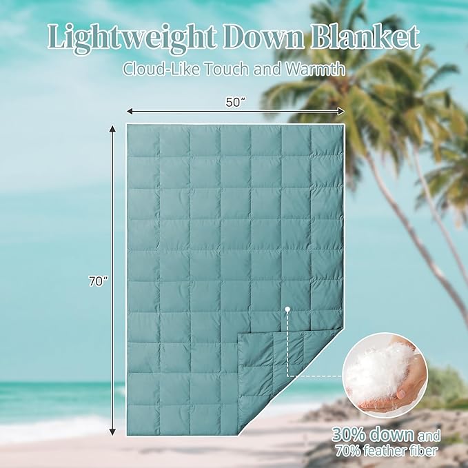 - Comfy Fabric: The lightweight down throw blanket is made of quality microfiber cover and filled with 70% feather fiber and 30% premium down which brings you ultimate warmth and coziness