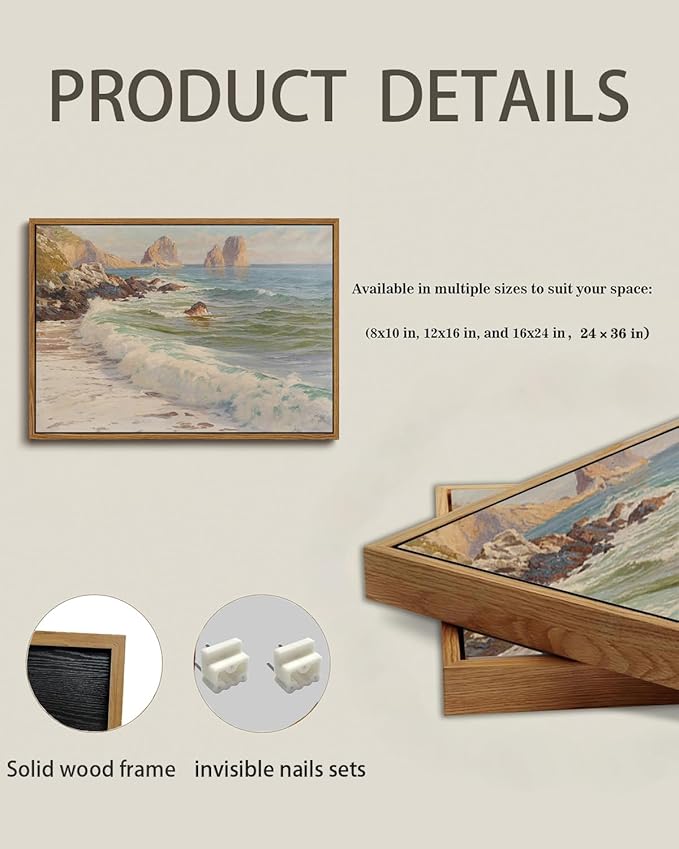 • Premium Canvas with Framed:Printed on quality canvas and framed for a finished look, this coastal wall art offers durability and elegance. The vivid ocean and beach scene stands out on your walls, making it an eye-catching piece that elevates your home or office decor.