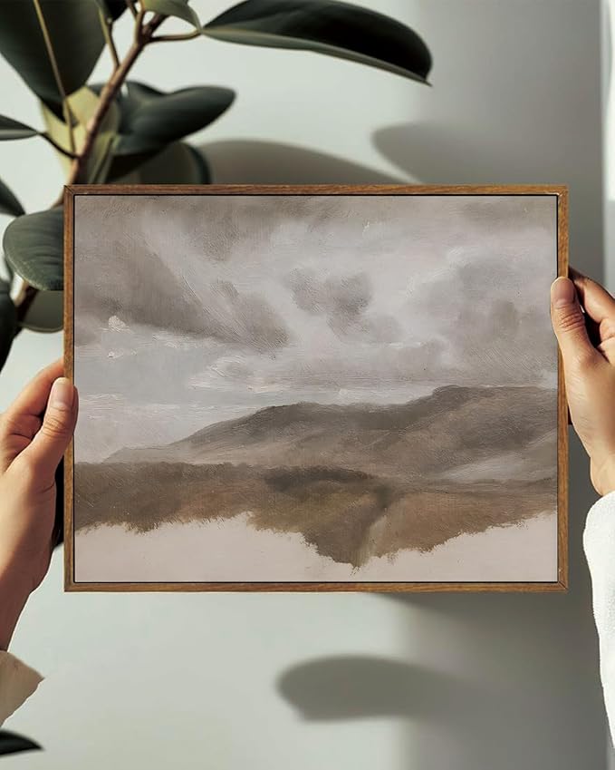 - Abstract Natural Wilderness and Earth Tone Elegance:This vintage landscape abstract canvas wall art features a peaceful hillside lake scene in soothing gray and brown earth tones. The oil painting style highlights the natural beauty of the couAntryside, adding a touch of rustic farmhouse charm to your space. Its timeless design effortlessly brings nature's tranquility into any room.