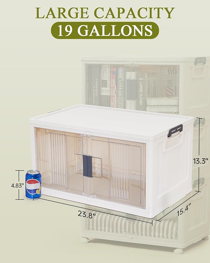 - Large Capacity: With dimensions of 23.8 inches (L) x 15.4 inches (W) x 13.3 inches (H) (2.17 inches when folded), these storage bins offer a spacious capacity of up to 76 quarts (19 gallons). They comfortably hold everyday items like cleaning supplies, snacks, office materials, and seasonal decorations. Their robust construction can support weights of up to 210 pounds (95KG) of weight, making them suitable for heavier items like books and tools