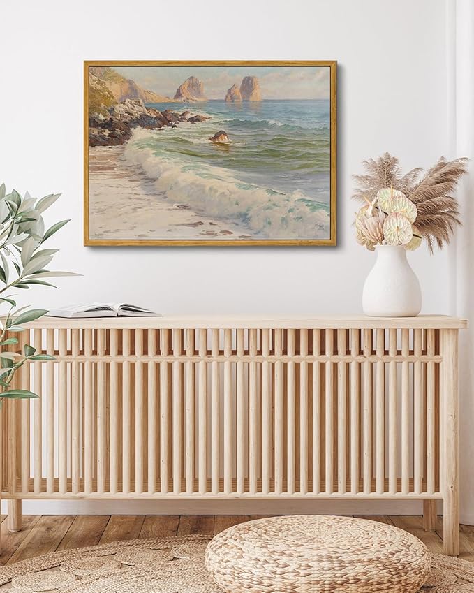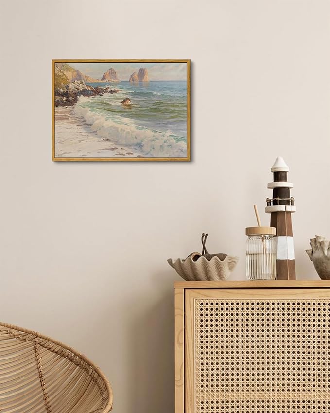 - Premium Canvas with Framed:Printed on quality canvas and framed for a finished look, this coastal wall art offers durability and elegance. The vivid ocean and beach scene stands out on your walls, making it an eye-catching piece that elevates your home or office decor.