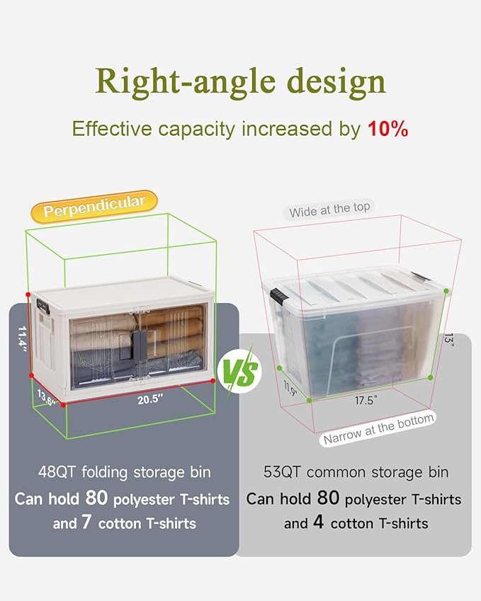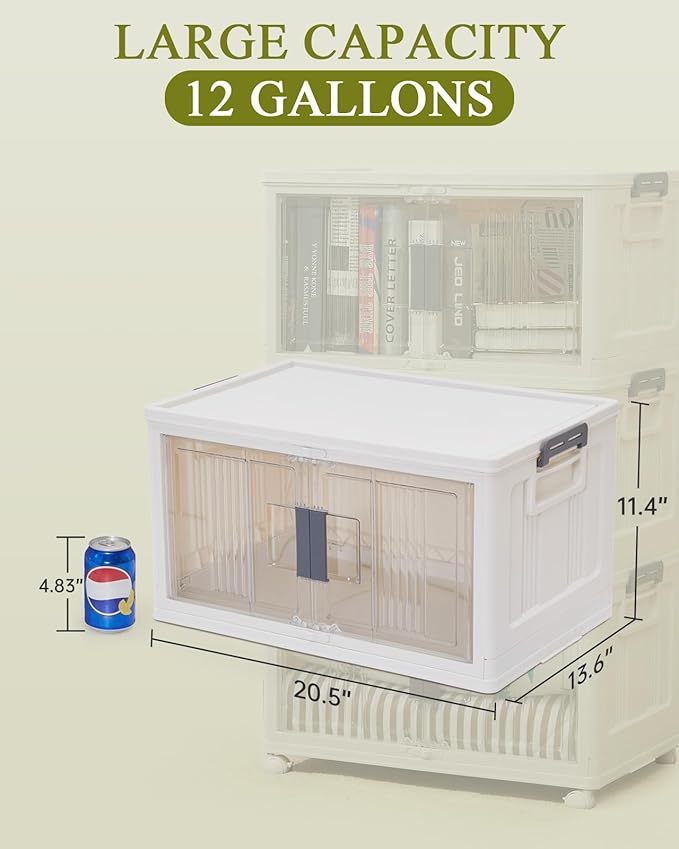 - Large Capacity: With dimensions of 20.5 inches (L) x 13.6 inches (W) x 11.4 inches (H) (2.17 inches when folded), these storage bins offer a spacious capacity of up to 48 quarts (12 gallons). They comfortably hold everyday items like cleaning supplies, snacks, office materials, and seasonal decorations. Their robust construction can support weights of up to 150 pounds (70KG), of weight, making them suitable for heavier items like books and tools