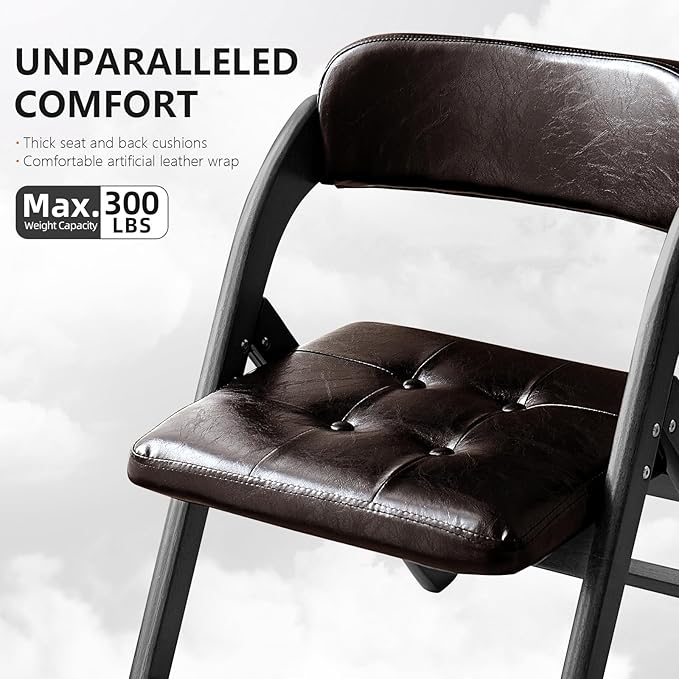 - Quality Comfort Material : The backrest and seat cushion of the luxury folding chair are wrapped in skin-friendly and comfortable waterproof artificial leather, which has good breathability and is very easy to clean. The edges of the padded folding chair are rounded, providing you with a safe and comfortable upholstered seating experience. The folding dining chair is filled with super soft high elastic sponge, which keeps you cool and comfortable while sitting for a long time without fatigue