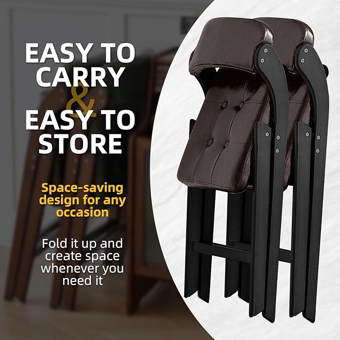 Padded Folding Chairs Set of 2, Wooden Dining Chair, Stackable Wooden Foldable Chair, Wood Folding Chairs with Cushion for Wedding, Guests Kitchen, Office, Party, Picnic Chair (Black Brown)