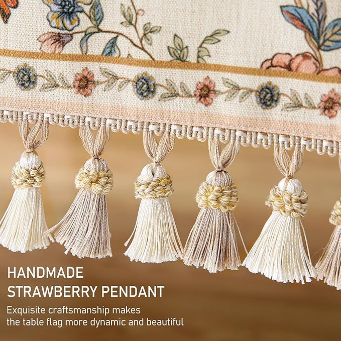 - Care Instructions:For table runners with tassels,hand washing or dry cleaning is recommended.Wash gently and air dry to maintain fabric quality.Table runners without tassels can be machine washed on a gentle cycle.After washing,they can be tumble dried on low heat; ironing is optional.Do not use bleach,as it may damage the fabric.