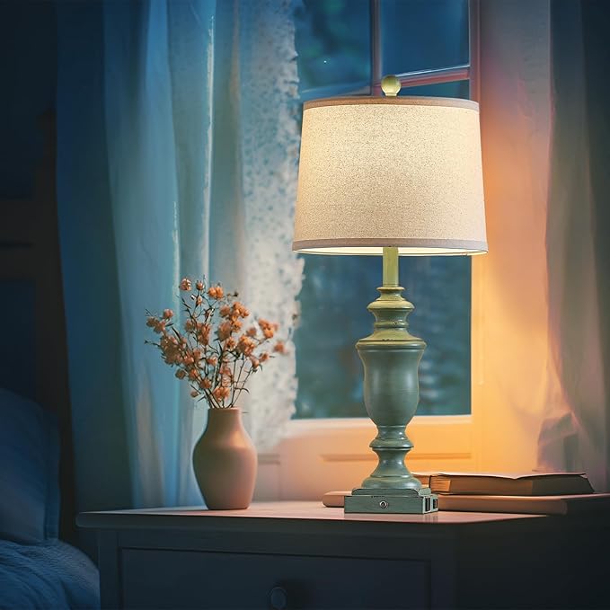 - 【Retro Elegant Design】 Room lamps for bedroom with its vintage resin body and linen shade, brings a touch of classic nostalgia to your living space, showcasing your refined taste. It can perfectly blend into any corner of your home, whether it's the bedroom, cottage, living room, study, office, or any other space (Note: The lamps for niaghtstand requires self-assembly)