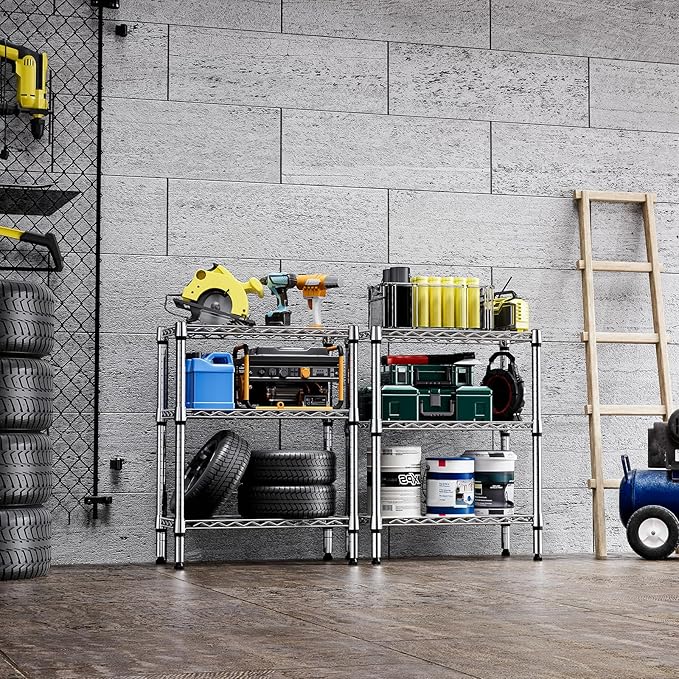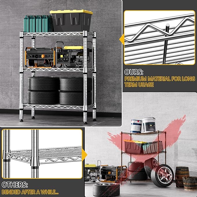 750 lbs 3 Tier Shelf Metal Storage Shelves Wire Rack Closet Organizers for Garage Kitchen Bathroom Laundry Chrome 11.8" D x 25.6" W x 31.5" H