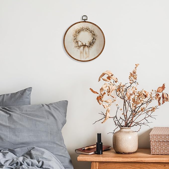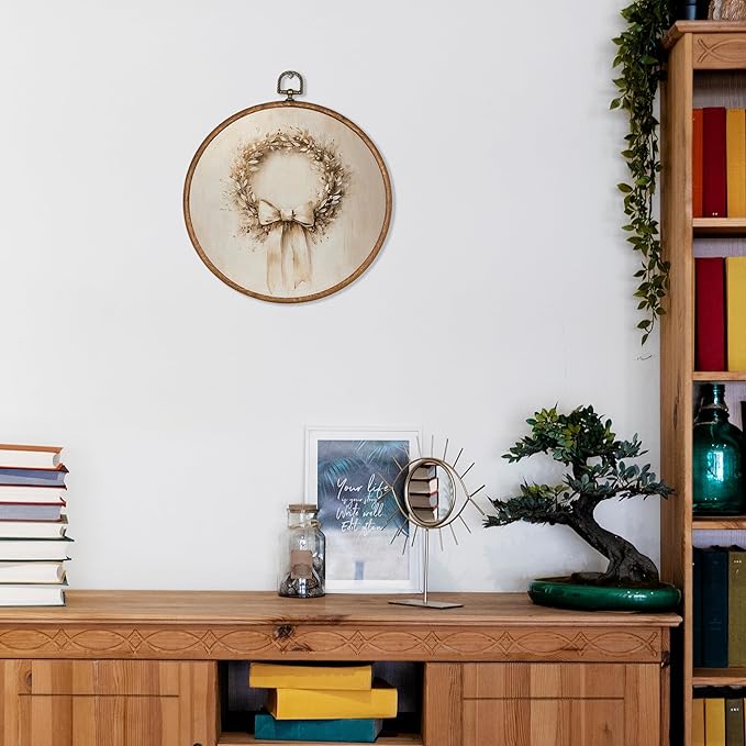 KSDUT Vintage Christmas Wall Decor Art - Retro Christmas Wreath Wall Art Canvas Frame Hanging Prints, Xmas Holiday Round Wall Art Decor for Home Farmhouse Decorations 10"x10"