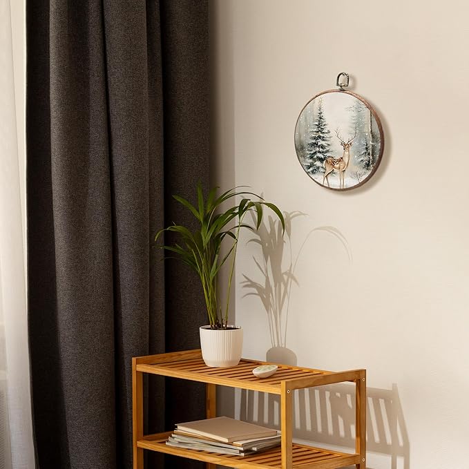 KSDUT Christmas Wall Decor Art - Winter Woodland Xmas Wall Art Canvas Frame Hanging Prints, Vintage Pine Tree Deer Holiday Landscape Round Wall Art Decor for Home Farmhouse Decorations 10"x10"