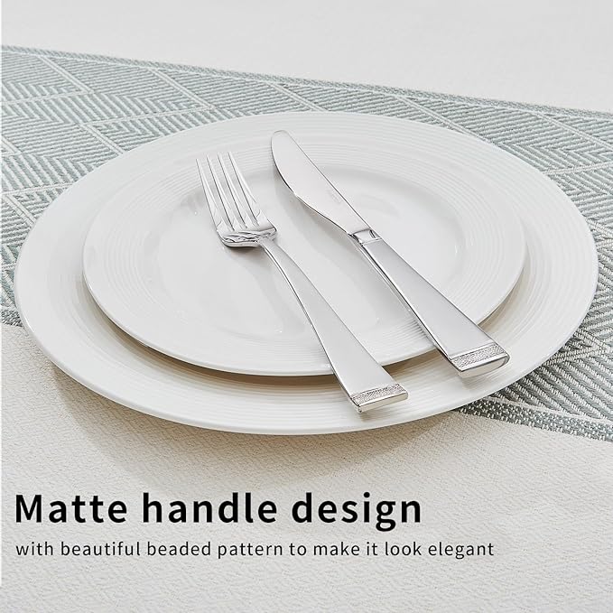 - BEADED HANDLE DESIGN: The flatware set has a beaded design at the end of the handle, which has slim lines that bring elegance. The beaded edges make the table setting more special.