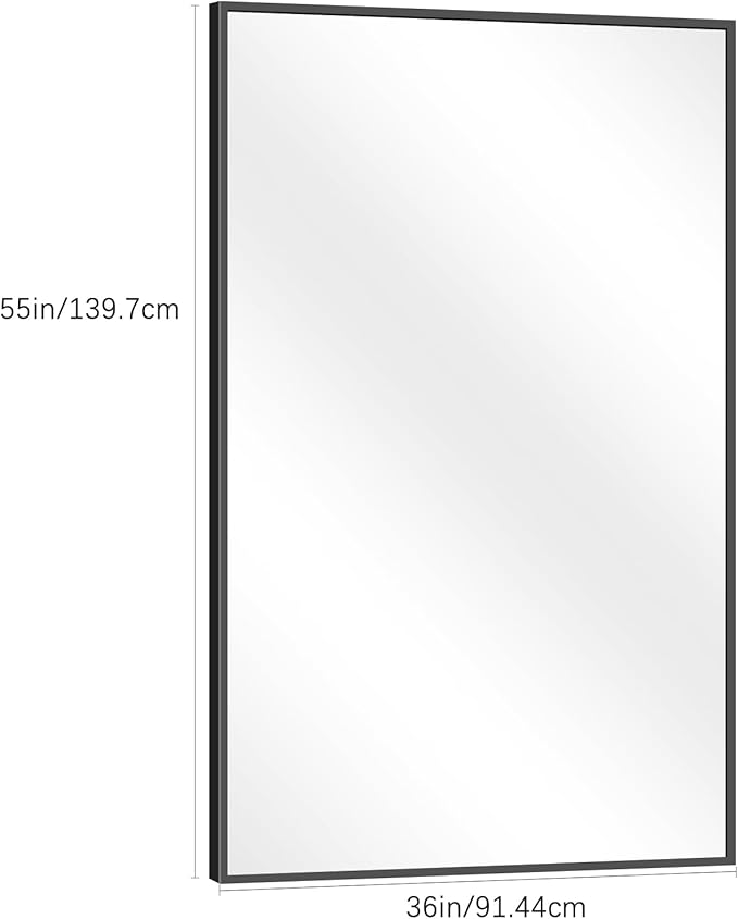Black Bathroom Mirror for Wall, 55x36 Inch Rectangle Mirrors with Metal Frame, Modern Vanity Wall Mirror Decor for Entryway Hangs, Bathroom Living Room Horizontal or Vertical