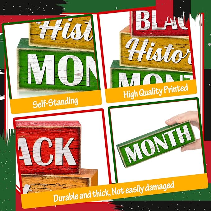 - Quality Material: the Black History Month table decoration is made of quality wood for enhanced durability; Colored in multicolor shades, these wooden pieces will bring the winter feel right inside your house; They will effortlessly add pops of color and rustic vibes to your home decor